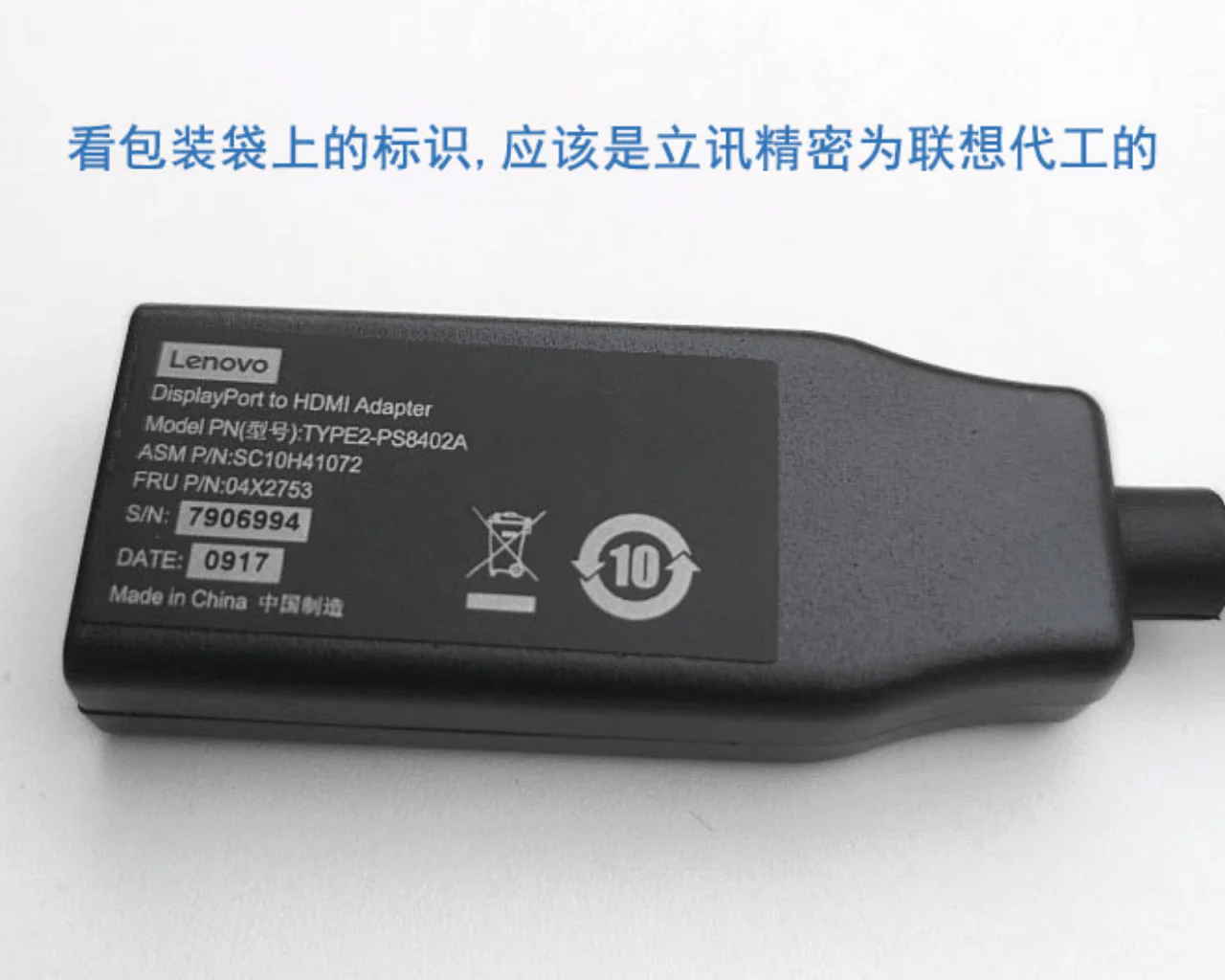 Lenovo DisplayPort Male to HDMI Female Adapter Cable 04X2753 SC10H41072