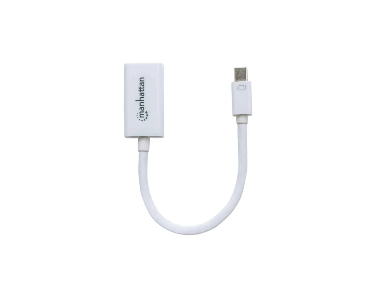 The Manhattan Mini DisplayPort to HDMI Adapter establishes a fast and convenient connection between a mini-DisplayPort media source and an HDMI display cable. Ideal for presentations, retail displays, and other uses, this single-cable solution keeps installations and workplaces neat and organized without an external power supply or complicated configuration. Nickel-plated contacts and full shielding help the Manhattan Mini DisplayPort to HDMI Adapter provide a clear and stable video transmission in home and office multimedia applications. A durable, white PVC jacket and molded boots with strain relief complement Macintosh systems and help ensure connections remain uninterrupted and steady.