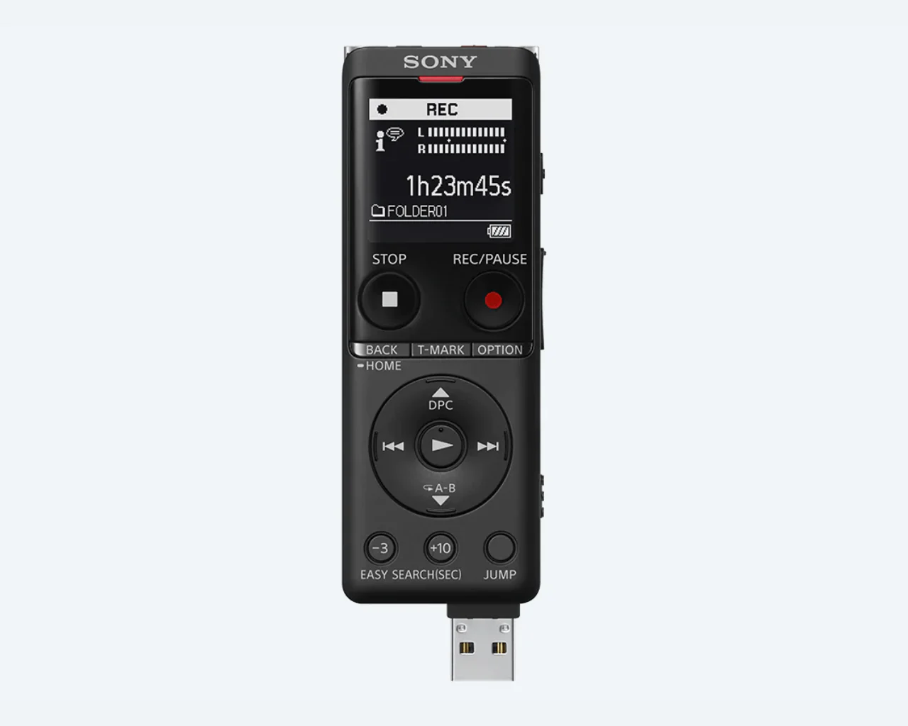 With its 4GB of built-in storage, the UX570 series can record up to 59 hours MP3 128kbps (STEREO). Plus, you can boost your storage with compatible memory cards. The microSDHC card will give you up to 32GB total storage or a microSDXC card will give you an impressive 64GB or more.